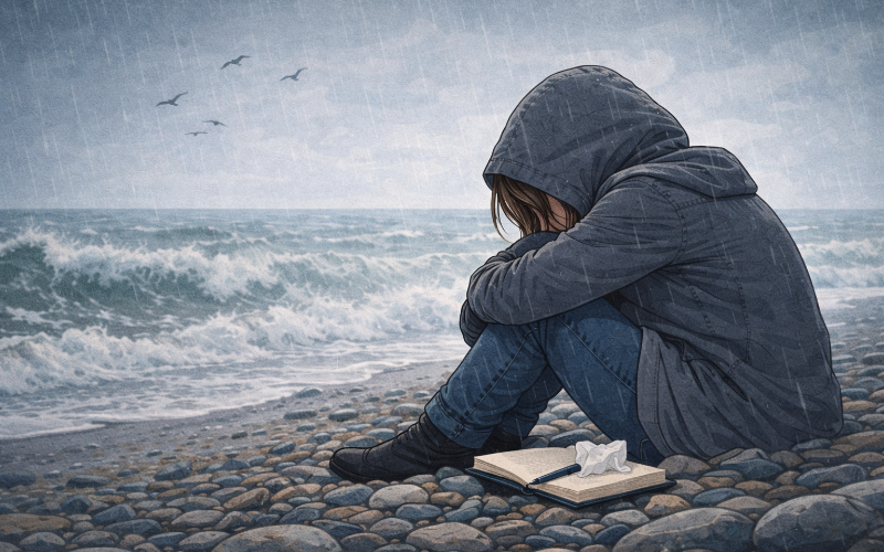 Hood up, partly to keep warm but mostly to hide from concerned eyes, I bawled